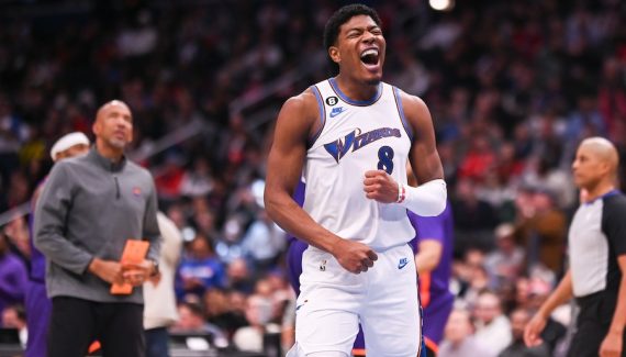 « Oh, vraiment ? » Rui Hachimura a du mal à le croire lorsqu’on lui annonce qu’il vient d’égaler son record en carrière. Alors l’ailier des Wizards jette un œil au tableau géant central pour le vérifier. Cette nuit face aux Suns, il a bien inscrit 30 points, et non pas 28 en raison de deux lancers-francs d’abord attribués par erreur à son coéquipier Kristaps Porzingis.