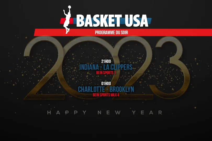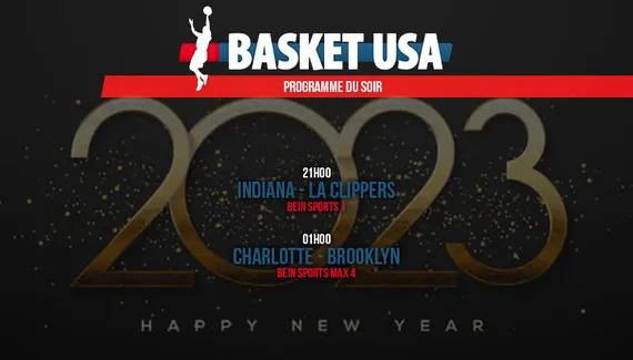 Cette année encore, la NBA ne fait pas relâche pour le réveillon du 31, et la soirée débute à 21h00 avec les Pacers qui reçoivent les Clippers, et c'est à suivre sur BeIN Sports 1. Au total, neuf matches avec à 1h00, les Nets en visite à Charlotte (BeIN Sports Max 4) pour viser une 11e victoire de rang.