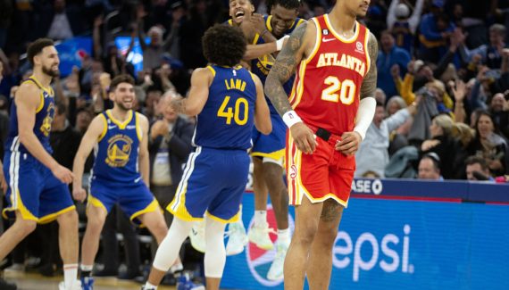 Kevon Looney se rappellera longtemps de ce premier match de l’année 2023. Entre épuisement et euphorie, les Warriors ont laissé explosé leur joie sur le sauveur de la soirée une fois la victoire assurée grâce à sa double claquette pour sceller le sort d’un match interminable entre Golden State et Atlanta.