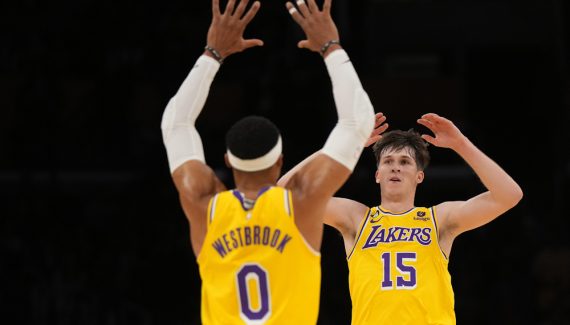 Si LeBron James (43 points) a une nouvelle fois été étincelant, c’est un autre Laker qui est sorti de sa boîte : Austin Reaves. Le « sophomore » des Lakers a rendu une copie plus que propre en sortie de banc avec 15 points, 7 passes décisives, 6 rebonds à 5/7 au tir dont 2/2 à 3-points. Une réaction attendue car si Austin Reaves fait partie du club restreint du 50-40-90 depuis le début de saison, il traversait une panne d’adresse assez impressionnante sur les deux matchs précédents face à Atlanta et Miami : 1 sur 18 au total. Une période délicate durant laquelle il a pu compter sur un coéquipier en particulier : Russell Westbrook.