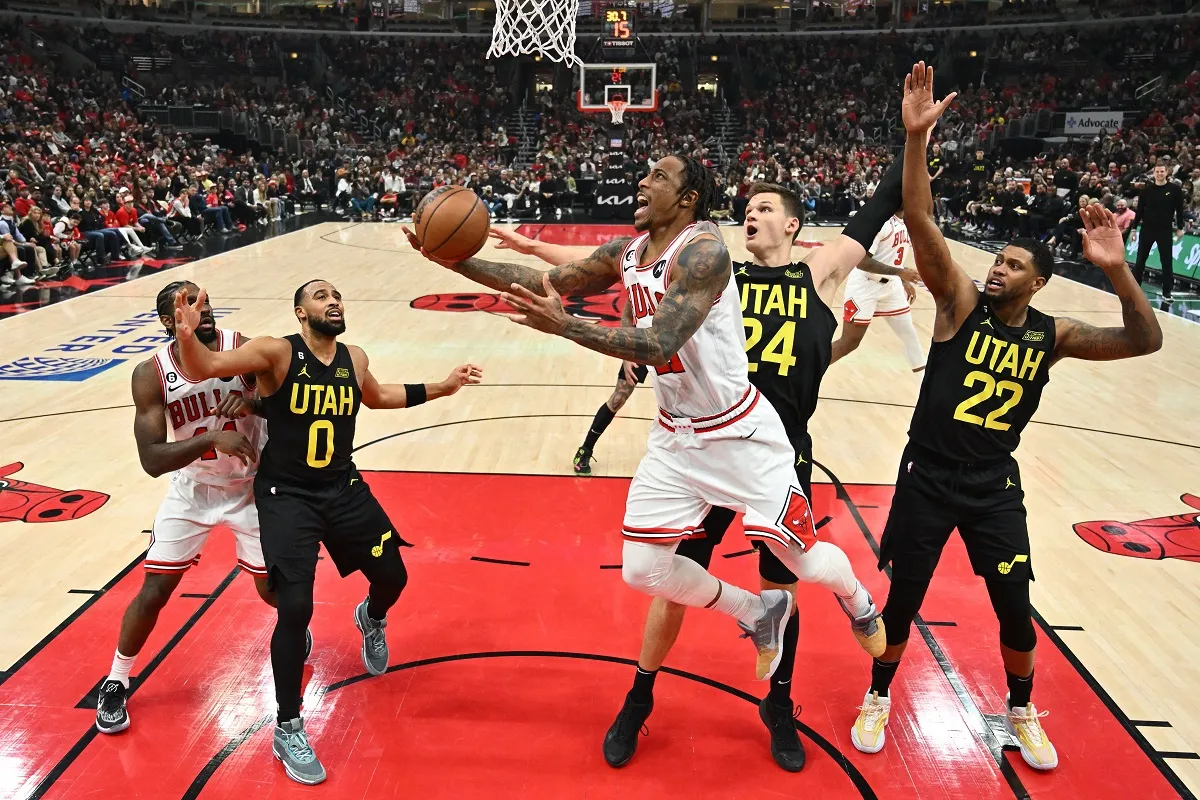 Le Jazz a mis quelques minutes à entrer dans la partie, après avoir encaissé un 8-0, puis les débats s'équilibrent jusqu'à la pause. En troisième quart-temps, Lauri Markkanen et Jordan Clarkson bousculent les Bulls, le Jazz inscrit 40 points et seul DeMar DeRozan résiste.