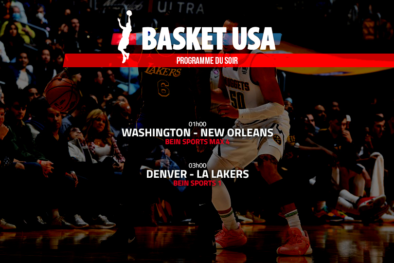 À 01h30, New York reçoit Milwaukee quand San Antonio est à Memphis (02h00). Gros morceau pour les Lakers, qui veulent enchaîner une sixième victoire chez les Nuggets (03h00, beIN Sports 1). LeBron James est absent…