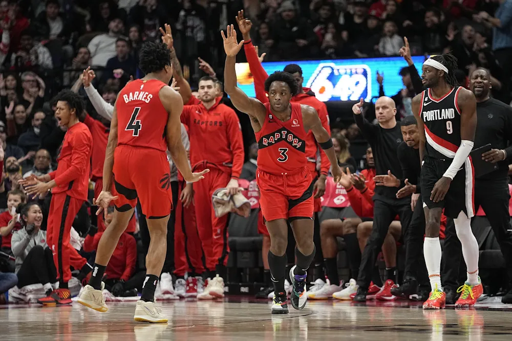 C'est un trio inédit composé de Precious Achiuwa, Chris Boucher et Christian Koloko qui a permis à Toronto de gérer et de consolider son avance dans le deuxième puis le quatrième quart-temps. Le trio d'intérieurs a inscrit 31 des 40 points des Raptors en sortie de banc, et récupéré pas moins de 17 rebonds. Un pari osé de la part de Nick Nurse car personne n’aurait imaginé voir ces trois intérieurs en même temps sur le parquet.