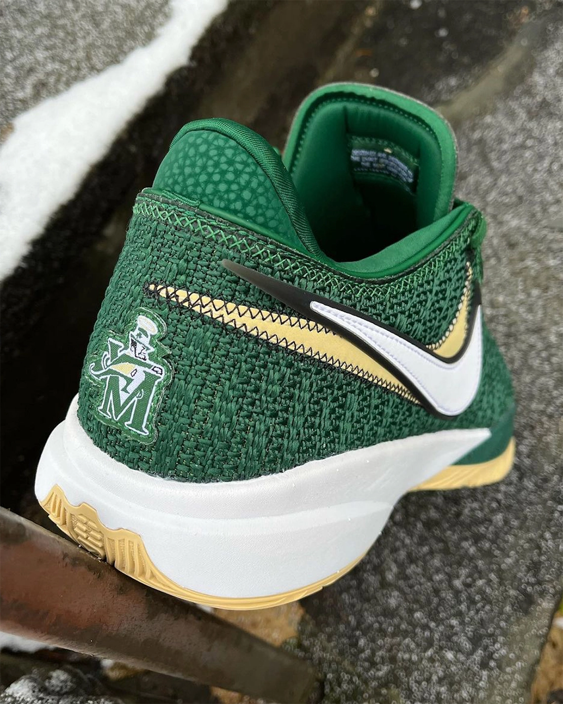 La tige verte est assortie de logos « Swoosh » en jaune et blanc, tandis que la semelle reprendr le mariage vert, jaune et blanc. On retrouve également le le logo du lycée au niveau du talon.