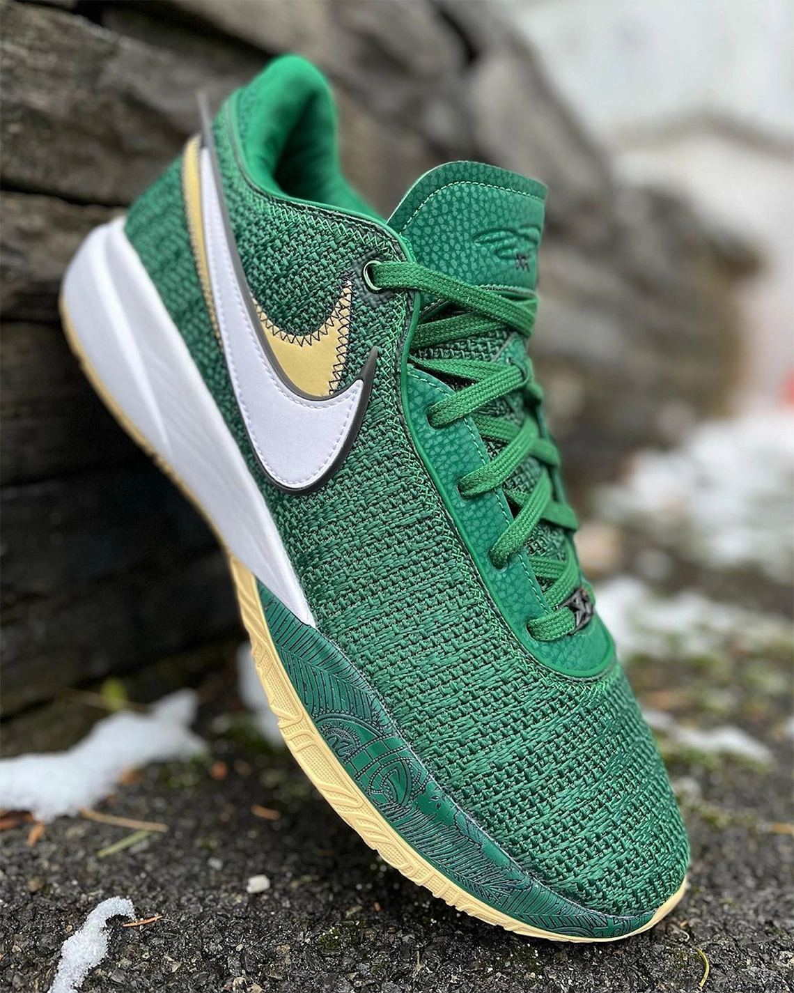 La LeBron 20 restera comme une paire à part et ce coloris ne fait que lui donner une dimension historique supplémentaire. Nike a en effet opté pour un coloris « SVSM », aux couleurs du lycée où LeBron James a évolué de 1999 à 2003, la St. Vincent – St. Mary High School.