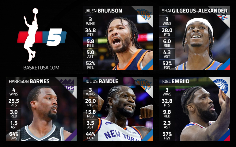Damian Lillard est le meilleur scoreur de la semaine en NBA mais son match à 50 points s’est soldé par une défaite, et les deux victoires de Portland (en quatre matchs) sont venues face à des Mavericks fatigués, qui ont même reposé Luka Doncic lors de la deuxième confrontation. En terme d’impact, on préfère donc la semaine de Jalen Brunson, malgré son “money time” raté face aux Bucks, mais également celle de Shai Gilgeous-Alexander.