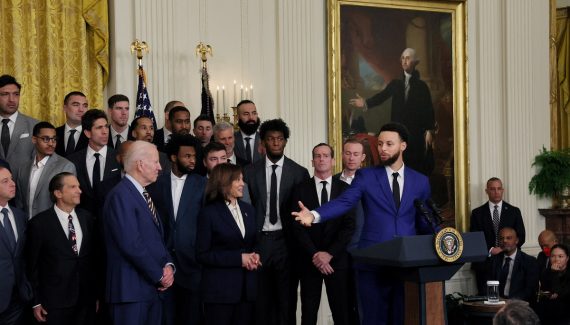 Kamala Harris, native de Californie et grande fan des Warriors, était évidemment ravie de voir Stephen Curry et sa bande à Washington. “En tant que jeune fille fière d’Oakland, c’est une immense fierté pour moi, vice-présidente, de dire que la Dub Nation est dans la place.”