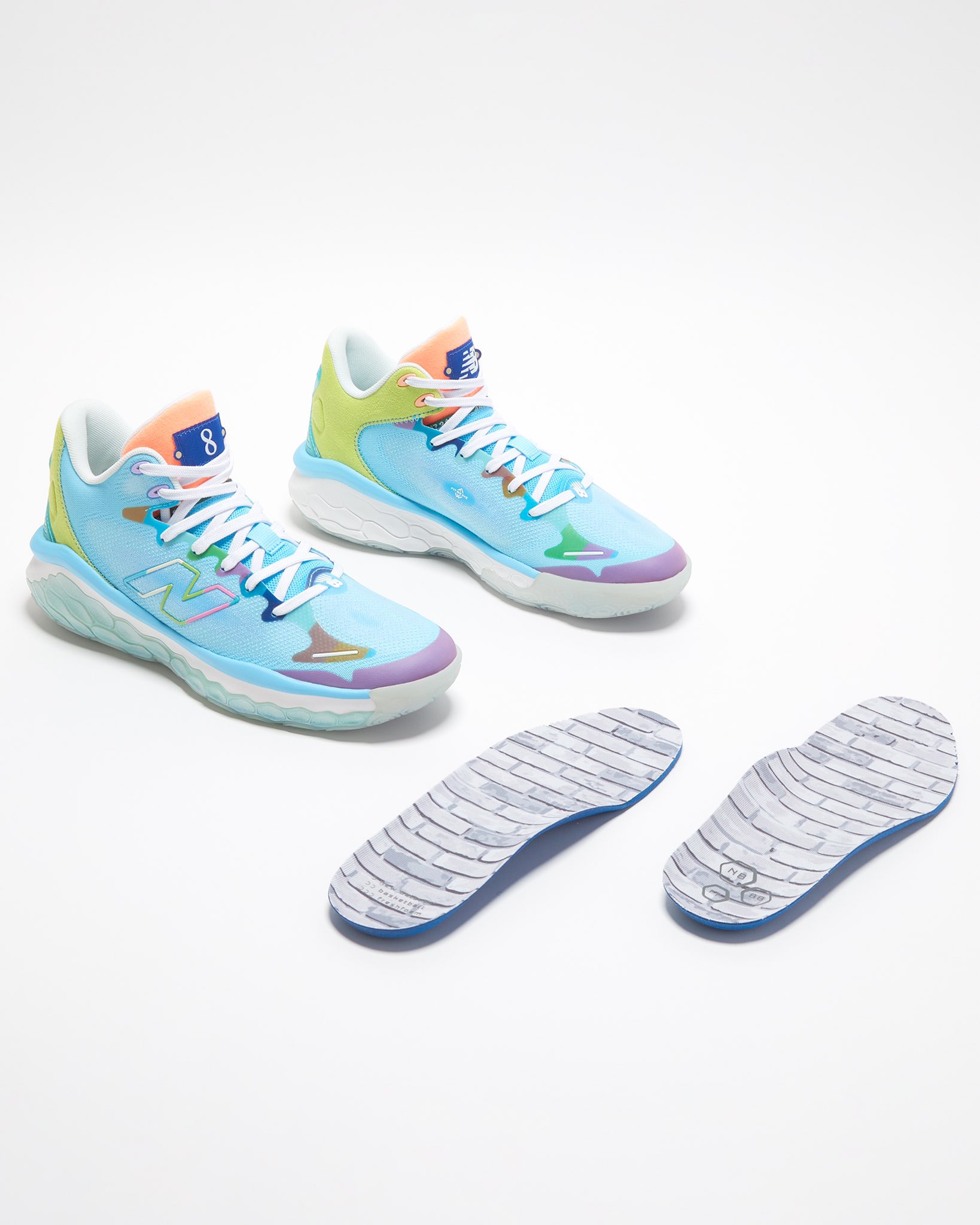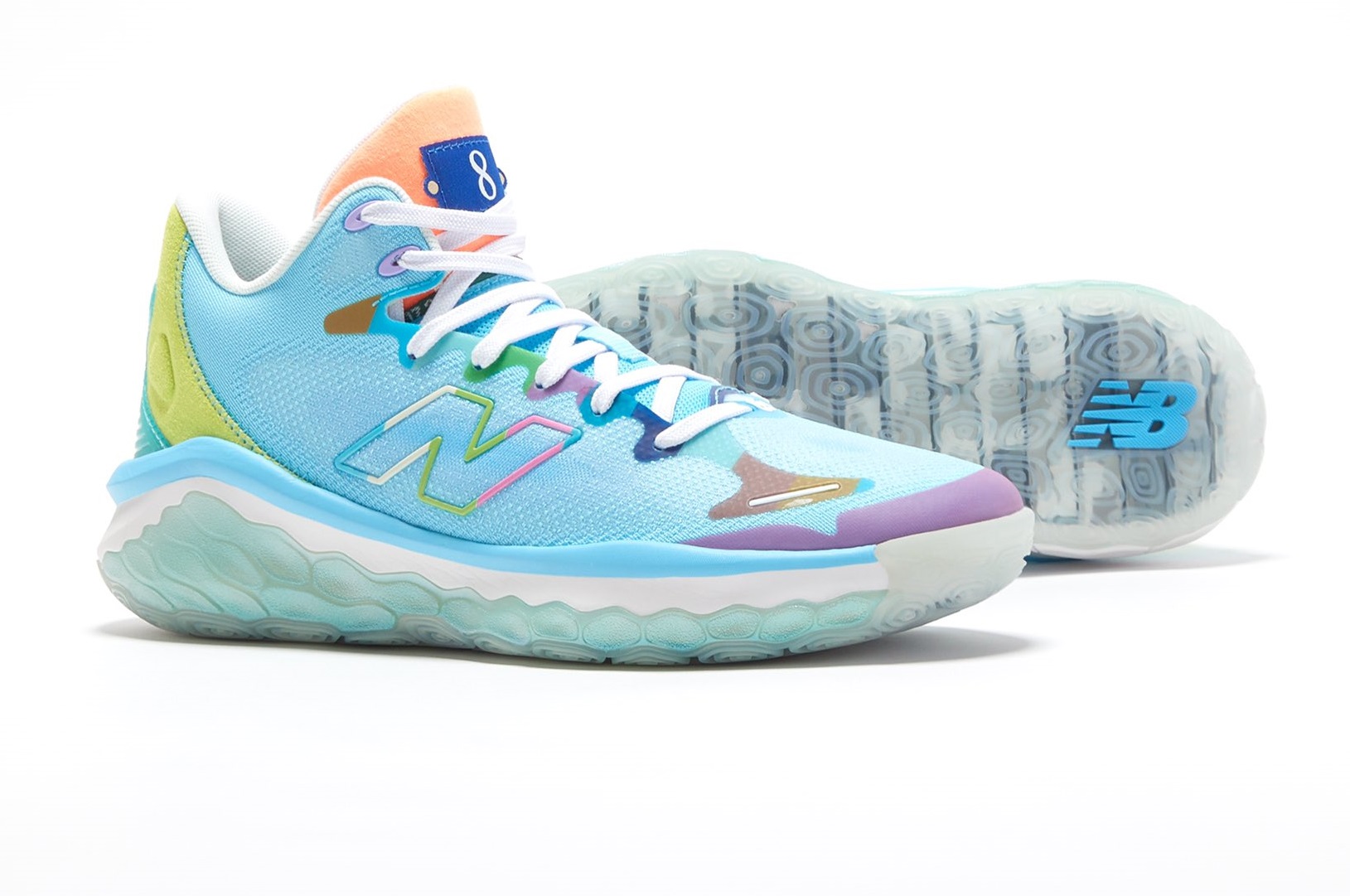 New Balance a profité du NBA Paris Game pour présenter son tout nouveau modèle dédié à la pratique du basket, la Freash Foam BB. Celle-ci a été portée pour la première fois en match par Zach LaVine, hier, sous un coloris principalement bleu clair, avec des notes de violet, vert et orange notamment, en références aux différentes façades colorées de la Rue Crémieux dans le 12e arrondissement de Paris. La mousse qui composera la semelle intermédiaire sera dotée d’un amorti Fresh Foam.