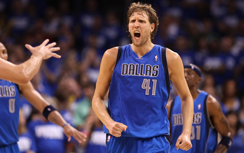 Dirk Nowitzki, malmené par Nick Collison, s’adapte