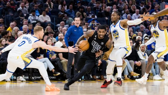 – Le 27-10 qui a offert la victoire à Brooklyn. Dans le sillage de Jordan Poole, les Warriors avaient entamé le dernier quart-temps sur un 16-7 pour prendre 13 points d’avance. Le Chase Center, déjà heureux de la victoire des 49ers dans l’après midi, fêtait déjà une victoire qui tendait les bras aux Warriors. Mais ces Warriors-là ont l’habitude de se tirer une balle dans le pied en fin de match. Au lieu de continuer à attaquer le cercle, ils se sont contentés de tirs forcés de loin et à mi-distance. Leur rythme s’est évaporé, ouvrant la porte à un festival de Kyrie Irving. Le meneur des Nets a marqué 12 points et fait 4 passes décisives, dont la dernière pour Royce O’Neale avec 27 secondes à jouer, pour mener un 27-10 dévastateur de Brooklyn qui a laissé le Chase Center muet.