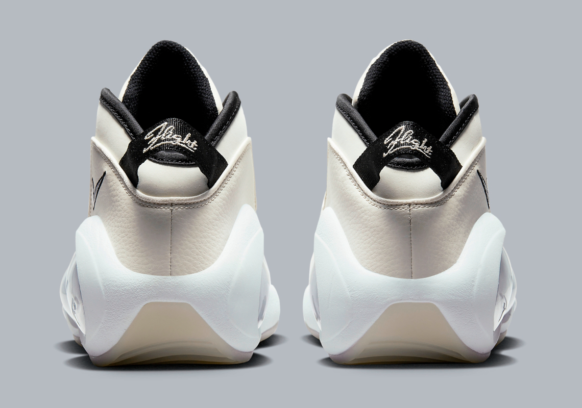 Cette fois, c’est un nouveau coloris plutôt réussi, baptisé « Pale Ivory » qui va intégrer la collection. On retrouve une tige en cuir grainé lisse, majoritairement en blanc cassé, avec des finitions en noir pour orner les virgules ou la tirette sur laquelle l’inscription « Flight » ressort en blanc. L’ensemble ressort sur une semelle intermédiaire blanche et une semelle extérieure en blanc translucide.