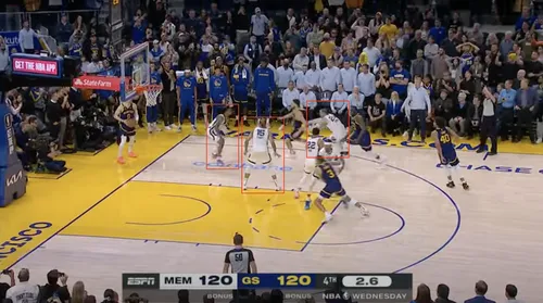 Quand il voit Klay Thompson partir vers le corner, il imite sa course pour le rencontrer à la sortie de l'écran et fermer la passe dans le corner. Dillon Brooks, qui défend sur le “Splash Brother” l'a suivi derrière l'écran pour ne pas lui donner d'espace, et Brandon Clarke, qui défend sur le poseur d'écran, est lui aussi focalisé sur le shooteur. À ce moment-là, les trois joueurs sont sur Klay Thompson et Desmond Bane a suivi Anthony Lamb.