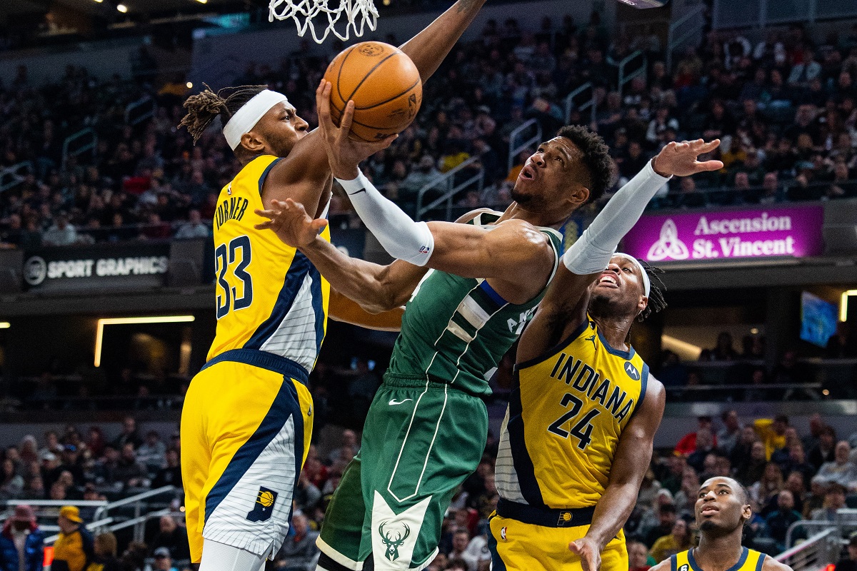 Indiana retrouve enfin des couleurs en troisième quart-temps, Buddy Hield et T.J. McConnell y inscrivent 26 points et Milwaukee est moins tranchant. Pour tenter de se rapprocher encore, les troupes de Rick Carlisle envoient Giannis Antetokounmpo sur la ligne des lancers-francs.
