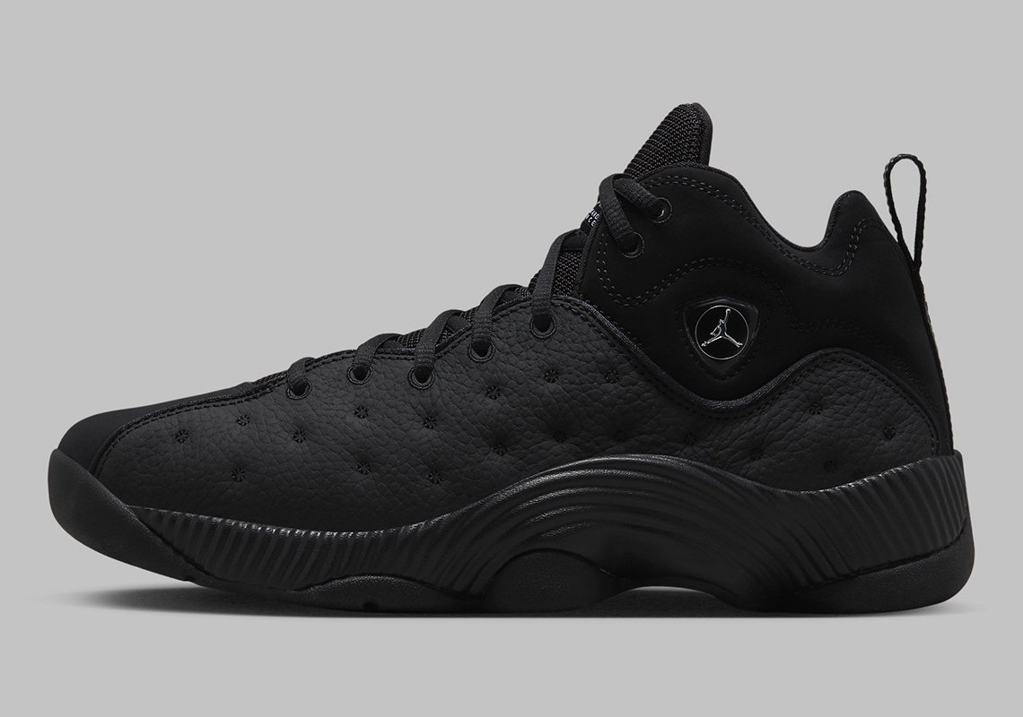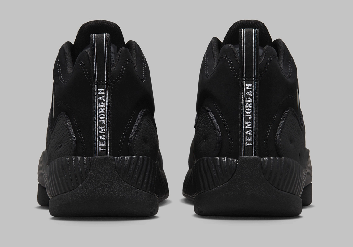 La tige s’habille ainsi de parties en cuir « grainé », de nubuck souple et de mesh entièrement en noir. L’ensemble est doté de finitions en gris, sur le logo « Jumpman » similaire à la AJ 14, le « Team Jordan » au niveau du talon ainsi que l’inscription « Jordan Performance Brand of Excellence ».