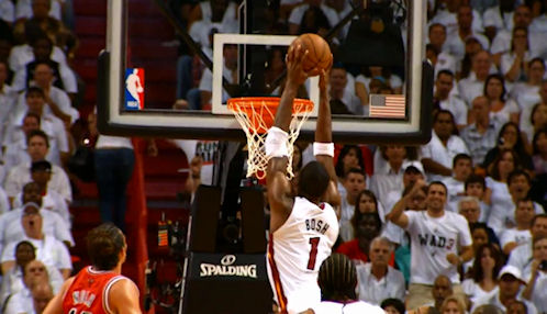 Symbole de ce Heat déjà chaud, Chris Bosh réalise de loin son meilleur match de sa carrière en playoffs. Après avoir raté ses 4 premiers shoots, le power de Miami se reprend et enchaîne une incroyable série de 14 shoots durant laquelle l’ancien Raptor ne se ratera qu’à une reprise (13/18 au total pour 34 points et 5 rebonds).