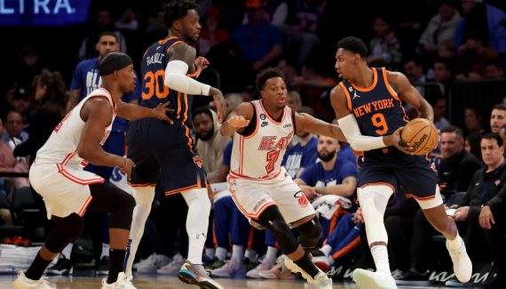 Par exemple en tête de 13 points dans le second quart-temps avant d’être rattrapés au score par le Heat avant la mi-temps, puis de 14 points dans le troisième quart-temps avant de gâcher une seconde fois cette avance. Ou encore, et surtout, de 5 points à une vingtaine de secondes de la fin, avant d’encaisser un tir primé ouvert puis de perdre le ballon sur la possession suivante, offrant ainsi une balle de match à Miami, les Knicks n’ont effectivement pas épargné le rythme cardiaque de leurs fans.