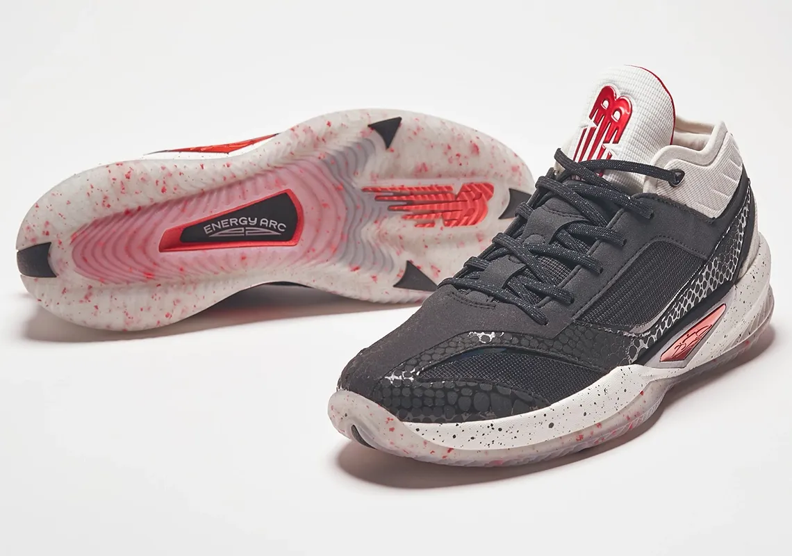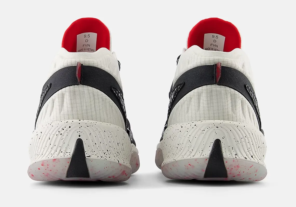 Voici donc ce premier coloris baptisé « Alpha Predator », doté d’une unité d’amorti « Fuelcell » comme sur la Kawhi II, avec une tige en matériaux synthétiques et un chausson moulé en néoprène. La tige noire est ainsi complétée de touche de blanc et rouge, comme sur la semelle ou la languette, sur laquelle ressort le logo « New Balance ».