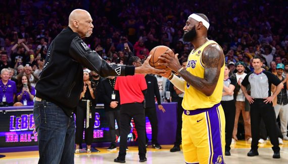 Immédiatement, le jeu s’est arrêté, “LBJ” a pu exulter et toute la famille et les proches du quadruple MVP sont venus sur le parquet, avec une vidéo hommage publiée dans la foulée. Puis une accolade avec Kareem Abdul-Jabbar évidemment et la venue d’Adam Silver sur scène pour un discours. Un moment unique !