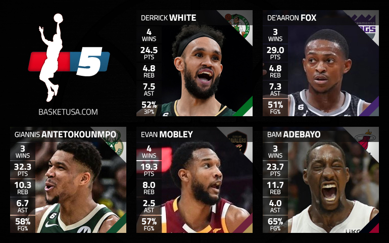Sur les ailes, Giannis Antetokounmpo reste inamovible alors que ses Bucks restent sur dix victoires. À ses côtés, Pascal Siakam, Julius Randle, Jimmy Butler voire Jayson Tatum, malgré sa maladresse, étaient des options. Mais là encore, on opte pour un joueur certes moins scoreur mais essentiel pour son équipe avec Evan Mobley.