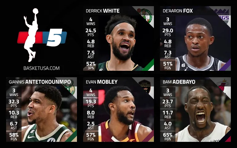 Encore du choix cette semaine avec notamment Shai Gilgeous-Alexander, Jalen Brunson, Ja Morant, Kyrie Irving, Trae Young ou Donovan Mitchell sur les lignes arrières. On veut toutefois mettre en avant l'impact de Derrick White, précieux en l'absence de Marcus Smart à Boston. Tout comme celui de De'Aaron Fox à Sacramento.