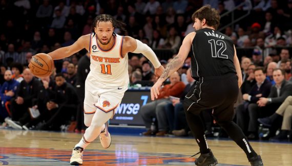 – Jalen Brunson, le nouveau roi de New York. Très fort depuis le début de la saison, et encore plus depuis qu’il a été “oublié” des remplaçants du All-Star Game, le meneur des Knicks a fait des Nets ses nouvelles victimes. Pourtant défendu durant une bonne partie du match par un excellent défenseur en la personne de Mikal Bridges, son ancien coéquipier de Villanova, le natif du New Jersey n’a eu aucun mal à se rendre dans ses spots pour prendre les tirs qu’il apprécie, particulièrement dans la peinture (18 points). Il a aussi bombardé avec réussite derrière l’arc (6/9), sans oublier de distribuer 5 passes décisives, sans perdre le moindre ballon. Bref, Jalen Brunson a sorti un de ses meilleurs matchs de la saison, avec 40 points à 15/21 et un énorme +23 au +/-, et les Nets n’ont absolument rien pu y faire dans leur moitié de terrain.