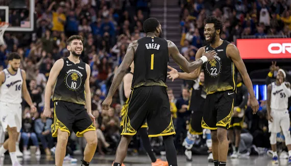 La défense des Wizards est dépassée et l'adresse de Golden State fait la différence. Andrew Wiggins et Jordan Poole mettent chacun deux 3-points, avant qu'un 3/3 longue distance de JaMychal Green ne fasse monter l'écart à +20 (106-86) !