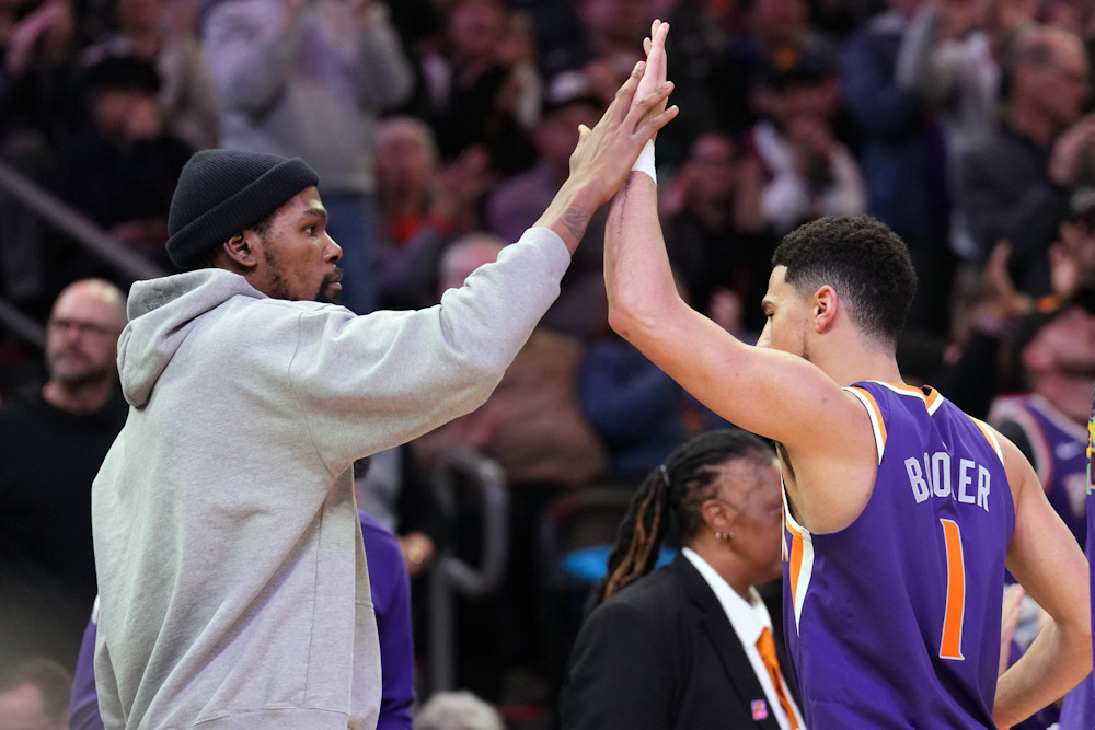 Alors que KD arrive à la fin de sa convalescence après sa blessure au genou droit le 8 janvier dernier, l’enthousiasme est déjà au rendez-vous. Il a d’ailleurs été ovationné par le public du Footprint Center durant le match face aux Kings.