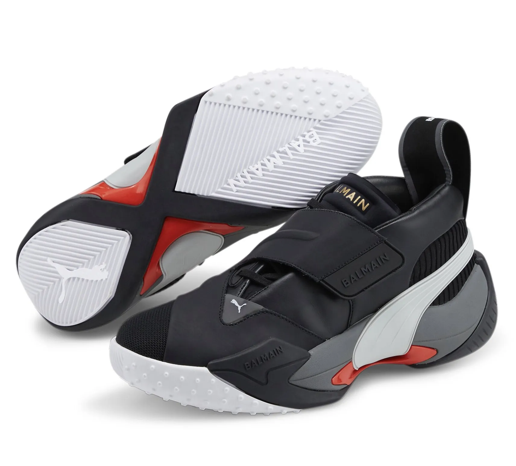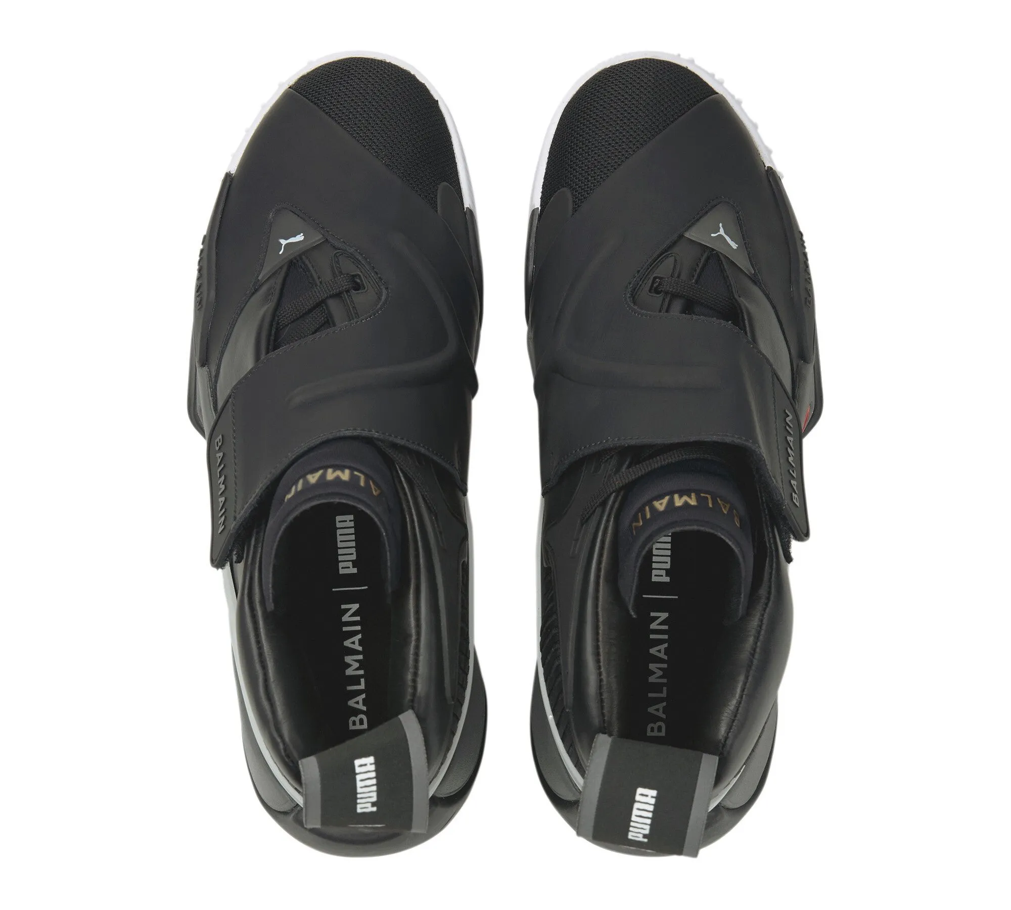 La marque Balmain est visible sur la languette, la sangle, et sous la semelle. L'inscription « Puma | Balmain » recouvre la tirette. La « Balmain Court » devrait être commercialisée dès le 18 février. Son prix pourrait atteindre les 1 000 euros…