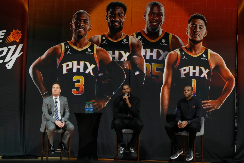 En compagnie de James Jones, le GM de la franchise, KD s’est exprimé sur ce nouveau chapitre de sa carrière, qu’il s’apprête à débuter lorsqu’il sera remis de sa blessure au genou. Il a notamment mis en avant la belle progression des Suns, qui ont su grandir au point de devenir un prétendant plus que sérieux au titre.