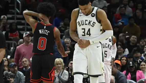 C'est la tuile de la soirée pour les Bucks qui ont enregistré cette nuit, face aux Bulls, une 12e victoire de suite : Giannis Antetokounmpo est sorti sur blessure dans le deuxième quart-temps. Une chute mal contrôlée après avoir tenté de contrer Coby White. Le double MVP s'écrase sur le socle du panier, et il se tord le poignet droit.