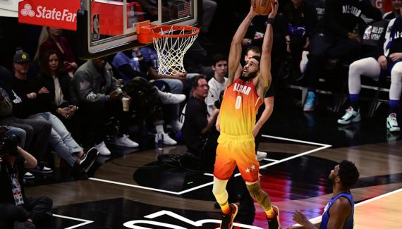 Même “dans le pire match jamais joué”, il faut un MVP, et il n’était pas compliqué à désigner. Meilleur marqueur de la Team Giannis, Jayson Tatum repart avec le trophée Kobe Bryant, mais aussi le record absolu de l’histoire du All-Star Game. Auteur de 27 points dans le seul 3e quart-temps, l’ailier des Celtics termine cette bouillie de basket avec 55 points à 22 sur 31 aux tirs, dont 10 sur 18 à 3-points, 9 rebonds et 6 passes.
