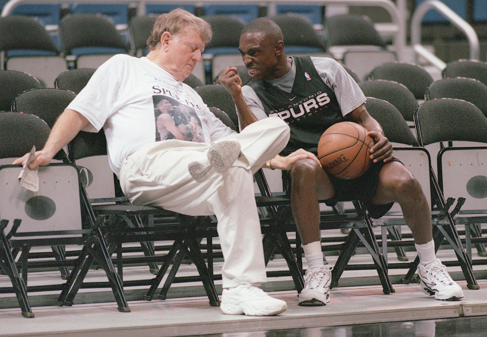1988, année charnière dans l’histoire des Spurs qui viennent de drafter David Robinson un an plus tôt, mais également de recruter Larry Brown comme coach. Celui-ci, tout juste sacré en NCAA avec Kansas, va faire équipe avec un autre nouveau venu sur les bancs NBA : Gregg Popovich, 39 ans. Red McCombs a été son premier patron dont il garde ce souvenir : « Quand j’ai vu ce grand bonhomme arriver avec ses grosses bottes de cow-boy, son manteau de fourrure et son grand chapeau texan, je me suis demandé : ‘Mais où est-ce que j’ai atterri ?’. Mais j’ai beaucoup appris de lui, c’était le patron. »
