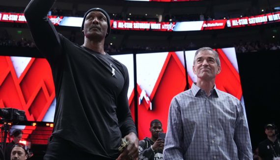 Le malaise était bien plus fort au sujet de Karl Malone, juge au concours de dunks, et célébré à la mi-temps du All-Star Game, avec Kareem Abdul-Jabbar et LeBron James, comme troisième meilleur marqueur de l’histoire.