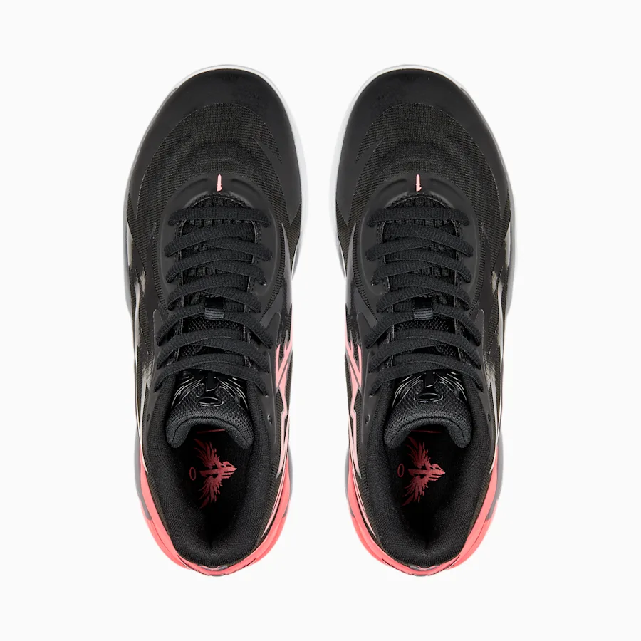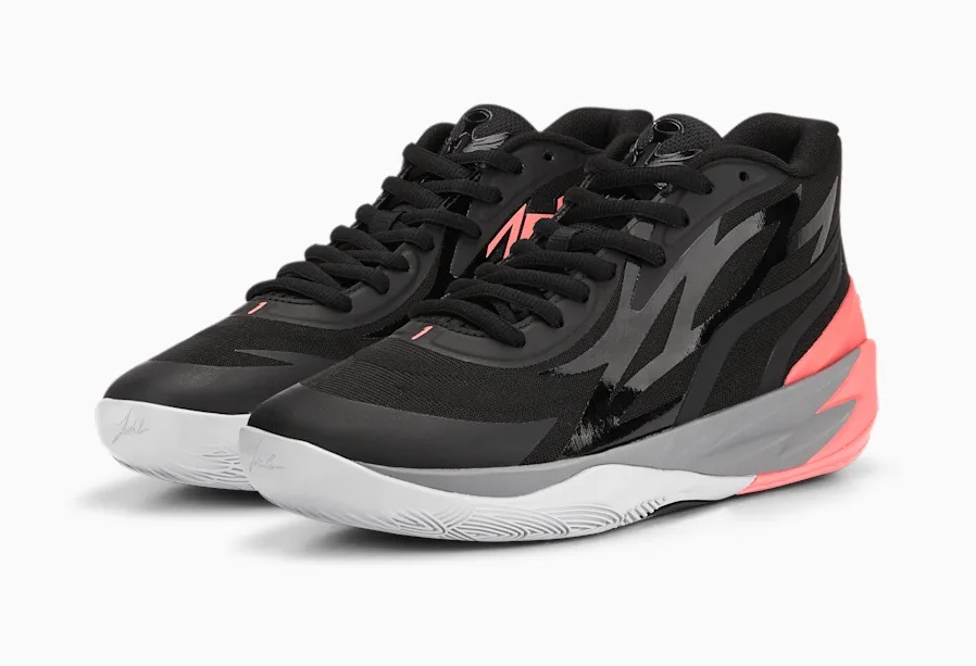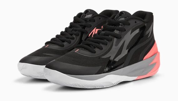 Puma nous avait habitué à plus de couleurs pour habiller sa MB.02, à l’image des derniers coloris « Galaxy » et « Rick & Morty », pour le moins bariolés. La deuxième chaussure de LaMelo Ball a cette fois opté pour une version plus sobre avec une tige principalement noir assortie de finitions en rouge et deux teintes de gris.