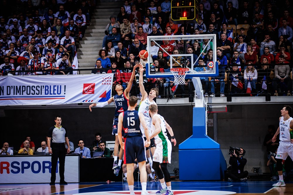 Comme jeudi en République Tchèque, le début de partie des Bleus a été un peu poussif (11-14), ce malgré un alley-oop suivi d’un contre de Victor Wembanyama. Dominés au rebond, les Français ont retrouvé des couleurs en attaquant le deuxième acte par un 12-0, grâce à l’adresse extérieure de Nicolas Lang, l’efficacité de Bodian Massa et la détente de Juhann Begarin, auteur d’un dunk en transition (23-14).