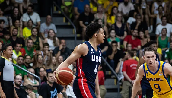Les Brésiliens du tandem Huertas-Caboclo ont dominé les débats en première mi-temps en passant à +10 dès le début du deuxième quart-temps (27-17). Même si Team USA a trouvé le moyen de rallier la pause à -4 (39-35) puis de passer en tête peu après le repos sur un lay-up de James Huff (41-42), le Brésil a vite retrouvé le fil, notamment grâce aux 3-points de Bruno Caboclo, Yago Santos par deux fois et Rafael Hettsheimeir (62-54).