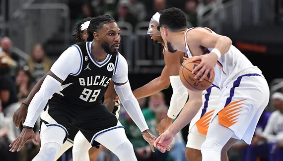 C'est tout de même Jrue Holiday qui a été le défenseur le plus décisif. Alors que les Bucks avaient repris l'avantage (102-100) à 24 secondes de la fin, Devin Booker a tenté d'initier les changements défensifs pour attaquer Jae Crowder en un-contre-un. Jrue Holiday a toutefois réussi à rester sur l'arrière de Phoenix, pour finalement provoquer une perte de balle qui a scellé le sort de la rencontre. Et le 14e succès consécutif des Bucks !