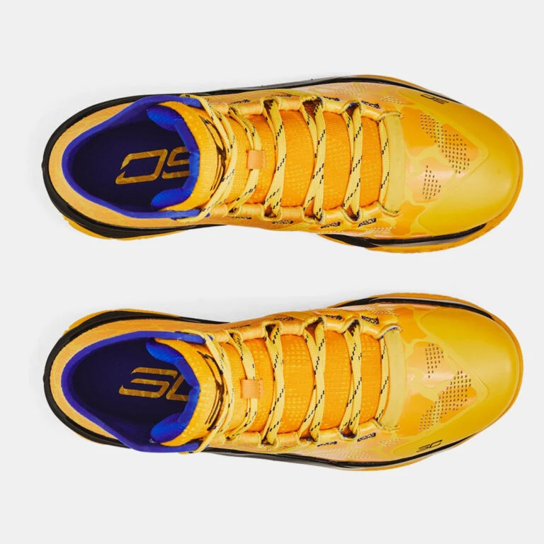 On retrouve donc ce fameux coloris jaune aux motifs « peau de girafe » sur la tige, et des finitions en noir et bleu foncé, sur les logos ou encore au niveau de la semelle. Le modèle est désormais disponible pour 130 euros sur le site officiel français d’Under Armour.