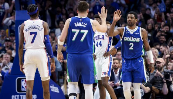 Face aux Sixers solidement installés à la troisième place de la conférence Est, les hommes de Jason Kidd ont ainsi remporté un très gros duel d’attaque (133-126), en pouvant compter sur un apport maximum de Luka Doncic et Kyrie Irving : 42 points (13/22), 4 rebonds et 12 passes pour le premier ; 40 points (15/22), 4 rebonds et 6 passes et 3 interceptions pour le second. C’est la première fois que deux joueurs des Mavericks terminent avec 40 points et plus dans la même rencontre.