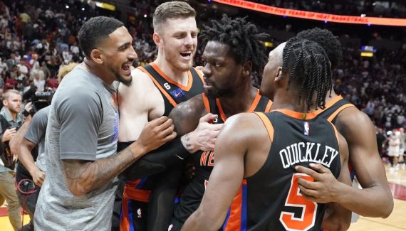 Julius Randle donne deux points d’avance aux Knicks à trois minutes du terme (114-112). Jimmy Butler égalise sur un lay-up avec encore une minute sur l’horloge. Julius Randle, encore lui, plante un sublime « fadeaway » avec la faute sur la tête de Bam Adebayo. Dans une séquence complètement folle en fin de match, Tyler Herro intercepte le ballon pour donner un point d’avance au Heat. Sauf que sur l’action qui suit, Julius Randle, une nouvelle fois monstrueux, assassine Miami d’un « game winner » à 3-points malgré une excellente défense de Jimmy Butler (122-120). Les Knicks enchainent une 8e victoire de suite.