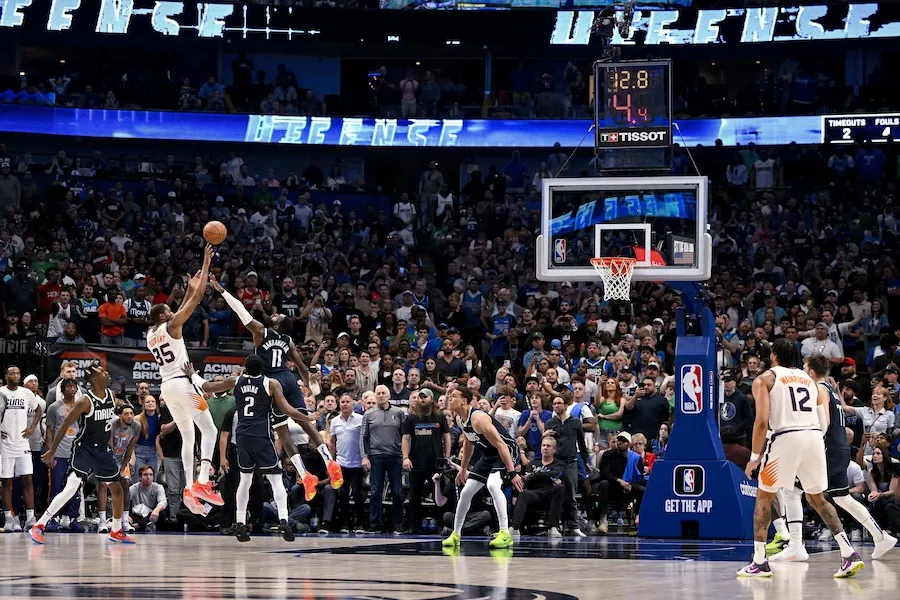 – Une bataille d'étoiles. Kevin Durant et Devin Booker d'un côté, Luka Doncic et Kyrie Irving de l'autre. Les deux hommes forts de chaque équipe ont tous dépassé la barre des 30 points inscrits. Ce double duel a pris une autre dimension dans le « money time ». Durant a rentré un autre tir primé à trois minutes de la fin, avant que son ancien coéquipier, Irving, ne réponde avec une finition impossible à proximité du cercle (122-121). Booker a ensuite eu l'intelligence de ressortir un bon ballon vers la surprise Wainright (122-124), Doncic a remis deux lancers-francs avant de lober un bon ballon vers Dwight Powell, pour répondre à la claquette de Deandre Ayton (126-126). Avec une quinzaine de secondes à jouer, Kevin Durant a finalement eu le dernier mot.