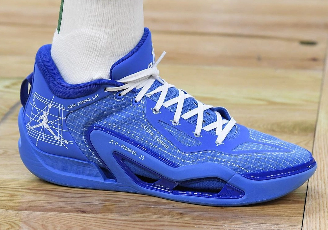 Comme pour Ja Morant avec la Ja 1, Jayson Tatum va avoir le luxe de dévoiler de nouveaux coloris en attendant la sortie officielle de la JT1 , sa première chaussure signature, dans le courant du mois prochain. Pour son 25e anniversaire, on a ainsi vu la superstar des Celtics porter une JT1 « Blueprint ».