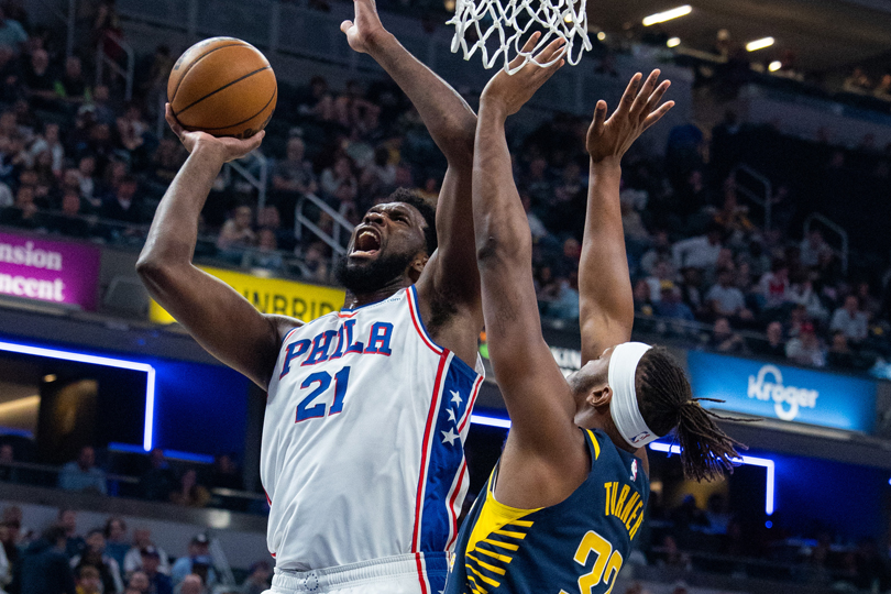 Avec sa capacité à jouer à la fois le pick-and-roll et le pick-and-pop, Joel Embiid est un véritable cauchemar pour les défenseurs adverses. Surtout qu’avec sa puissance, sa technique et sa vista, il peut sanctionner quasiment à volonté sous le cercle ou à mi-distance. D’autant plus lorsque la pression défensive sur le jeu à deux avec James Harden ne perturbe pas la connexion entre les deux hommes, comme ce fut le cas cette nuit face à Indiana.