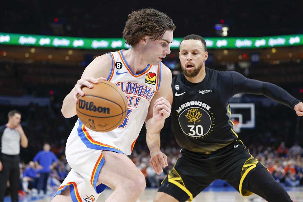 Après la défaite face aux Lakers d’Anthony Davis pour son retour, Stephen Curry et les Warriors tentaient leur chance à Oklahoma City cette nuit. Mais, avec un Josh Giddey en triple double, et un Shai Gilgeous-Alexander finalement présent et plutôt saignant, c’est bien le Thunder qui a dicté sa loi à domicile (137-128) pour un deuxième revers de suite des champions en titre. Une fois de plus, la défense des Warriors a été catastrophique…