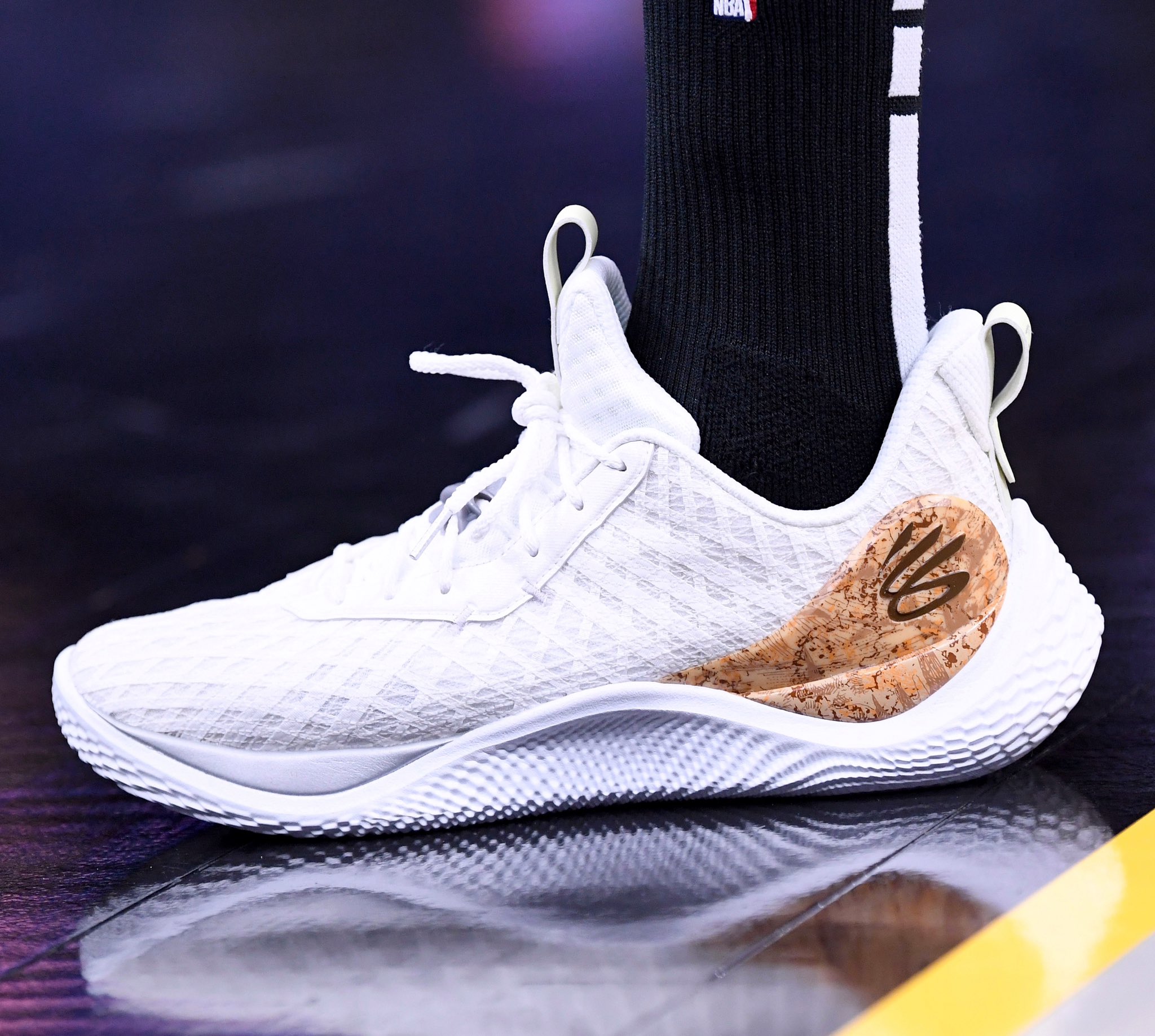 Stephen Curry arborait en effet une Curry 10 « PE » dont le coloris s’est inspiré du « Domaine Curry », qui a notamment commercialisé un Sauvignon Blanc avant que celui-ci ne soit épuisé. La tige est donc entièrement blanche, avec un petit clin d’œil à sa production résidant dans une partie en liège au niveau de la malléole.