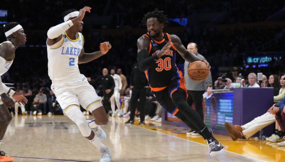 Sans doute plus motivé qu’à l’accoutumée, alors qu’il retrouvait aussi Anthony Davis, son ancien coéquipier aux Pelicans, Julius Randle n’a en tout cas pas manqué de briller face aux “Purple & Gold” : 33 points, 8 rebonds et 5 passes (en 36 minutes), à 11/24 au shoot, dont 3/12 à 3-points, et 8/11 aux lancers.