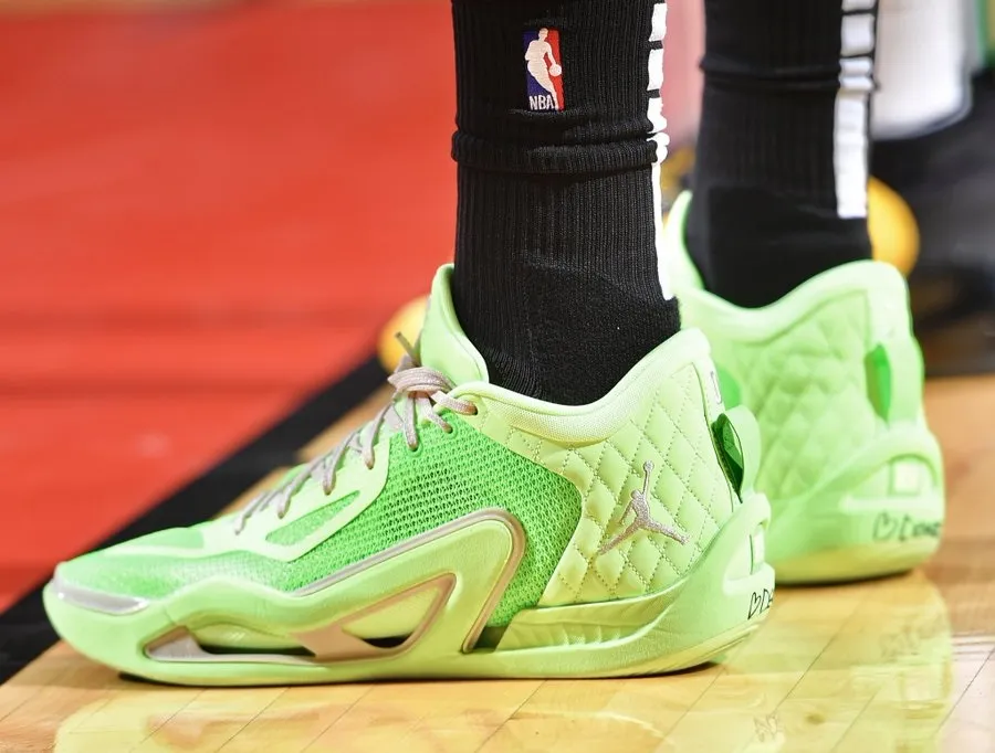 Jayson Tatum continue de dévoiler de nouveaux coloris de sa première chaussure signature, la JT1, dont la sortie est imminente. À Houston, le joueur des Celtics a porté une version inédite habillée de deux teintes de vert. Une façon de rendre hommage à sa franchise tout en restant original au regard des tons choisis.