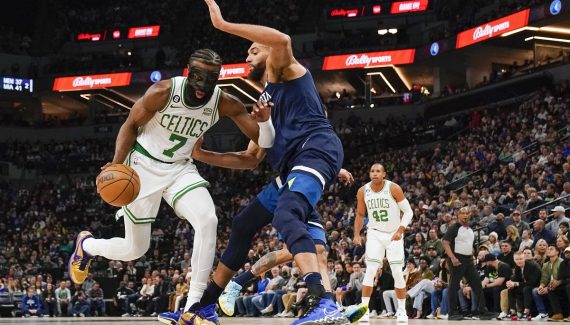 C’est le joueur de Boston qui remporte l’entre-deux. Comment ? Parce qu’il a (trop) anticipé le lancer. La balle, qui n’a pas vraiment eu le temps de monter, arrive dans les mains de Jayson Tatum qui, après avoir subi la faute, scelle la victoire avec deux lancers-francs.