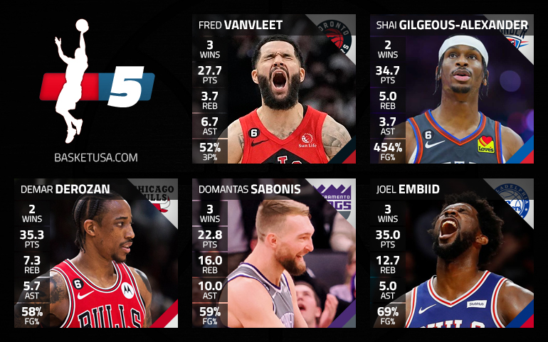 C’est sur le “frontcourt” qu’on a dû faire un choix délicat. Giannis Antetokounmpo avait largement les arguments pour intégrer le cinq de la semaine, tout comme DeMar DeRozan. Le problème, c’est que sous le cercle, on avait bien du mal à faire un choix entre Joel Embiid et Domantas Sabonis comme pivot de la semaine.
