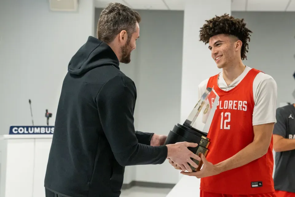 Des mains de Kevin Love, ancien lauréat de ce trophée, Cameron Boozer (2m06, 15 ans) a reçu la coupe du Gatorade National Boys Basketball Player of the Year. Créée en 1986 par la célèbre marque de boisson énergisante, cette récompense est l'une des plus prestigieuses pour les sportifs et sportives scolarisés au lycée, et dans le passé, Kobe Bryant, LeBron James ou encore Jayson Tatum ont reçu ce trophée.